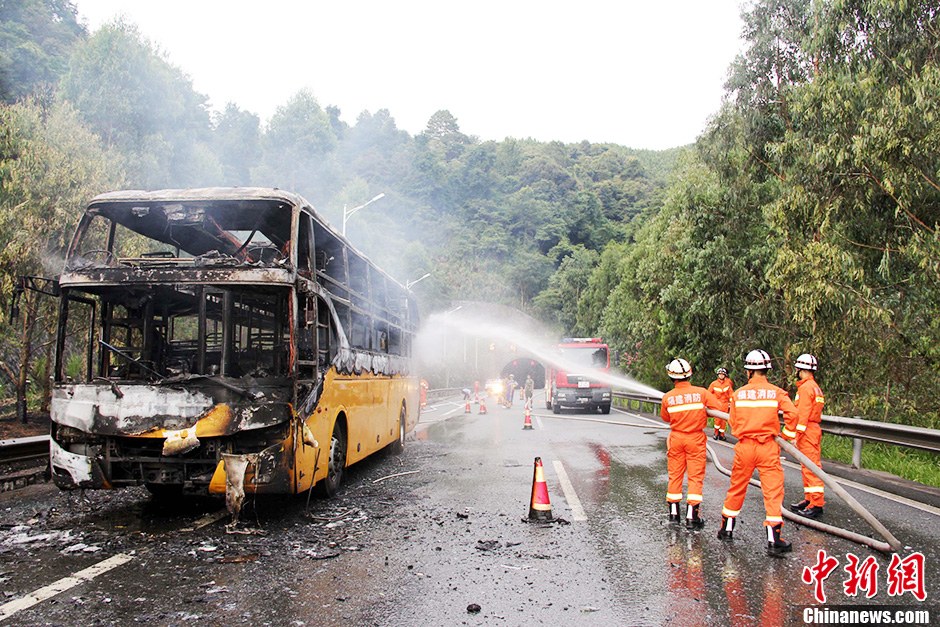 闽北一天两大巴被大火吞噬 两车63人全部逃生
