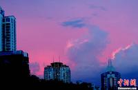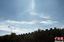 7月31日下午,经过一场短时雷电暴雨后,山西太原上空出现双彩虹景观。中新社发 韦亮 摄