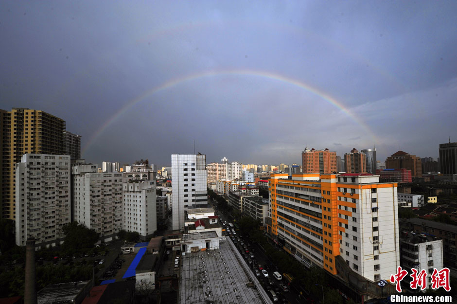 山西太原暴雨过后现双彩虹景观