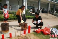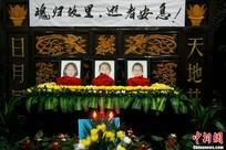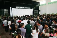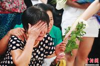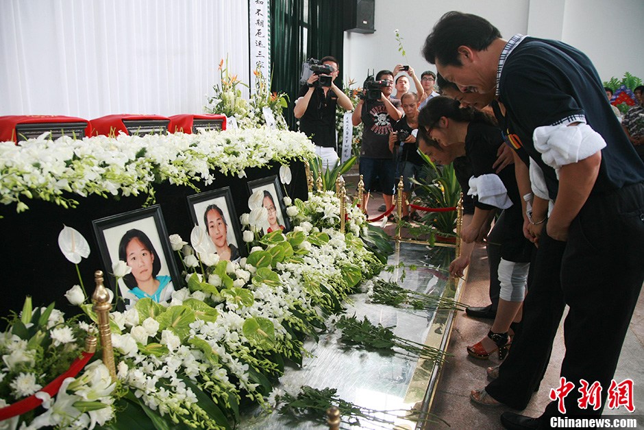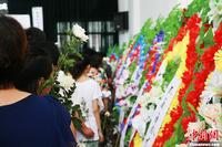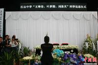 8月1日上午,在韩亚空难中不幸遇难的3名浙江江山中学学生追思会在浙江江山殡仪馆举行,遇难者亲友、同学和江山市政府工作人员近500人前来参加,他们手腕上系着白色毛巾,手持鲜花,以寄托哀思。中新社发 李晨韵 摄
