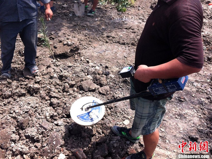 8月4日,江苏建湖,事发现场,还有人带来金属探测器前来寻找古钱。李根 摄 图片来源:CFP视觉中国