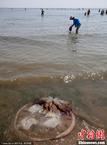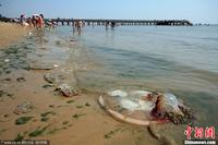 北戴河现巨大水母搁浅海滨浴场 游客不敢触碰