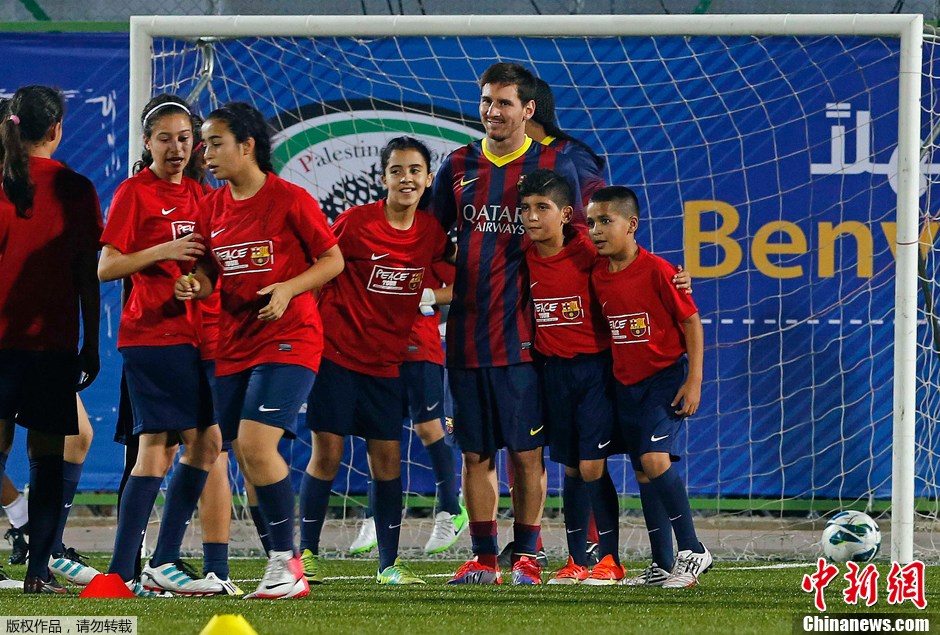 巴萨球星以色列参加足球活动 梅西与小球员互动