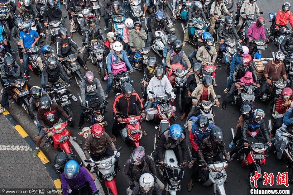 印尼数千万人返乡过节 “铁骑大军”规模赛“春运”