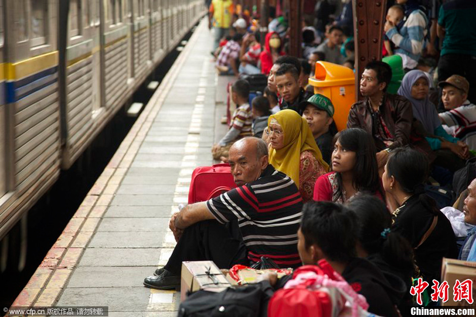 当地时间2013年8月5日和6日,印尼,人们准备回家过开斋节。印尼运输部预计全国将有2900万人返乡过节。印尼是世界上穆斯林人口最多的国家,约87%的人口信奉伊斯兰教。图片来源:CFP视觉中国