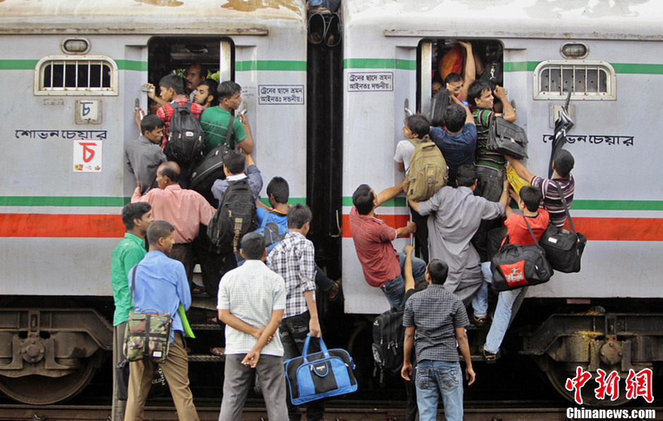 当地时间2013年8月7日,孟加拉国达卡,穆斯林挤火车回家过开斋节。图片来源:东方IC 版权作品 请勿转载