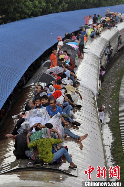 当地时间2013年8月7日,孟加拉国达卡,穆斯林挤火车回家过开斋节。图片来源:东方IC 版权作品 请勿转载