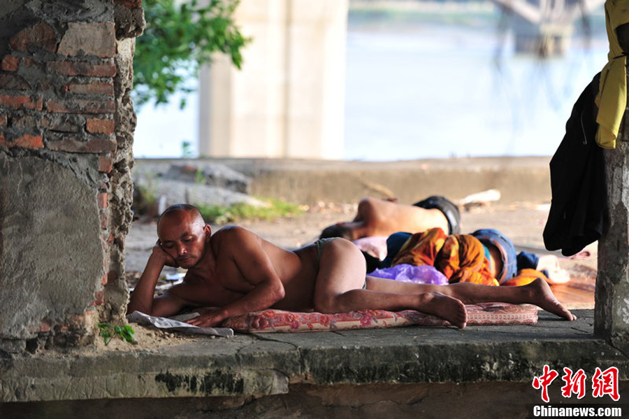 8月05日,福建省泉州市,泉州江大桥底下,市民避暑纳凉。谢明飞 摄 图片来源:CFP视觉中国