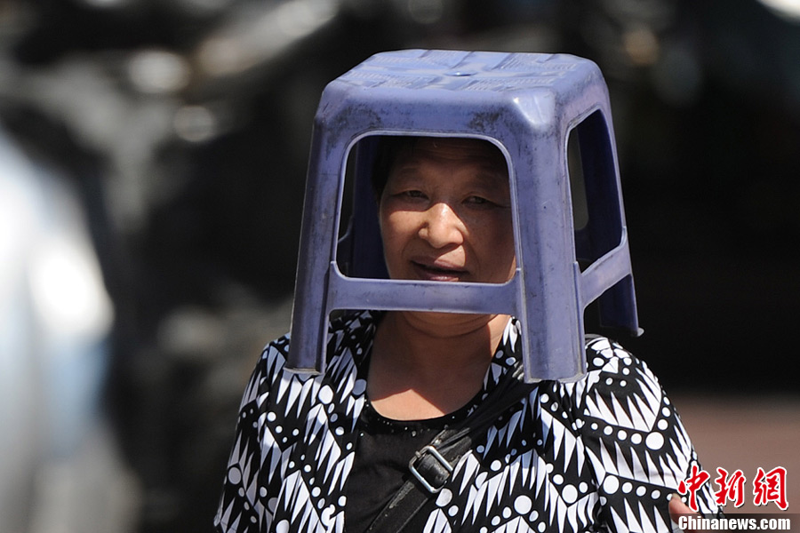 8月7日是“立秋”,重庆一擦鞋大妈用凳子扣头遮阴避暑。“立秋”一般预示著炎热的夏天即将过去,秋天即将来临。但目前,中国南方地区持续多日的高温并没有减退的迹象。陈超 摄