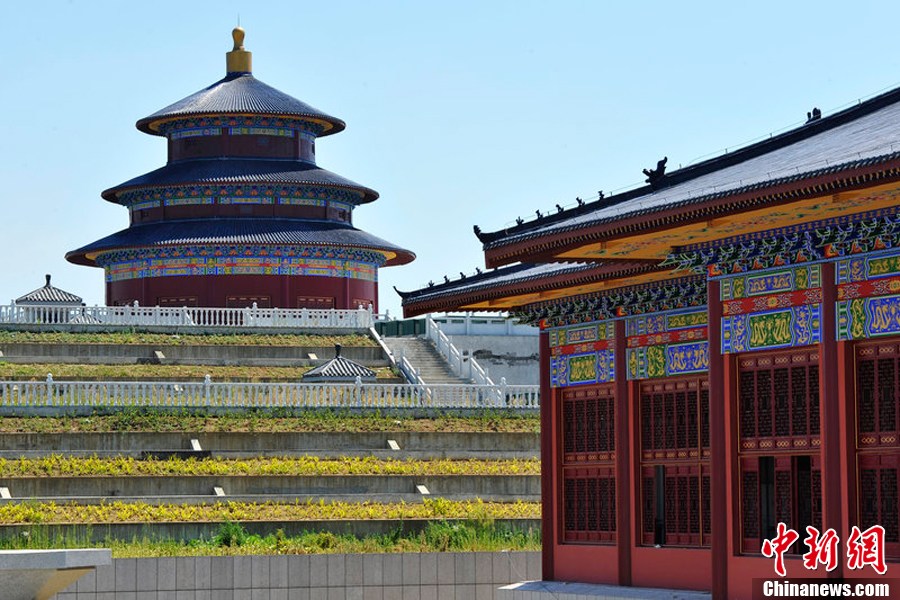 记者驱车80多公里,从武昌赶至汪集街汪集村,老远就看见“天坛”连同村外安仁湖边数百亩土地被朱色“宫墙”围住,墙内仍在施工。