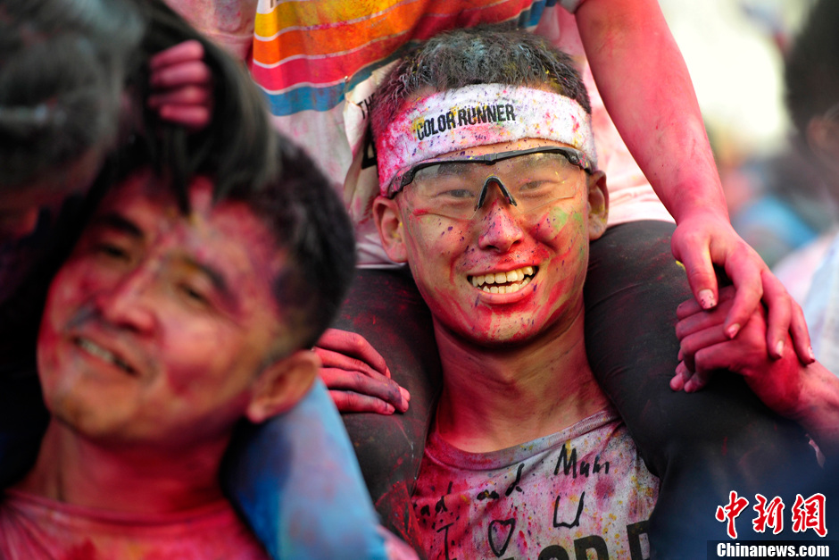 8月10日,北京园博园,万余名体育爱好者参加了5公里彩色跑运动。中新网记者 金硕 摄