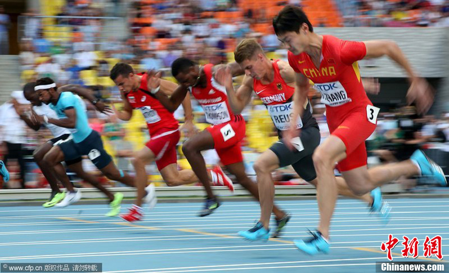 田径世锦赛张培萌百米小组第一晋级 成绩超博尔特