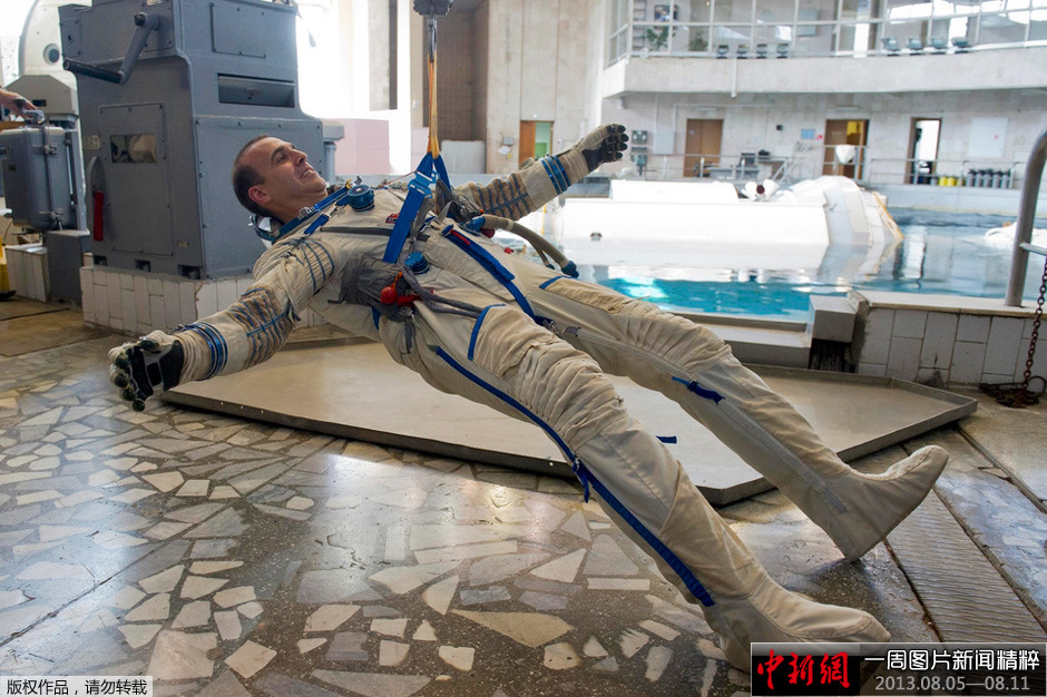 当地时间8月7日,俄罗斯,宇航员Rick Mastracchio在宇航员培训中心参加训练。