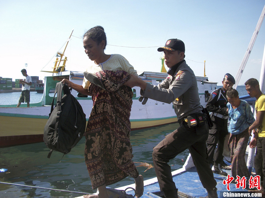 当地时间2013年8月11日,印度尼西亚东部小岛上的罗卡滕达(Rokatenda)火山喷发岩浆和火山灰,目前已经造成6人丧生。图为居民紧急转移。图片来源:东方IC 版权作品 请勿转载