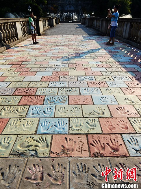 8月12日,正值中国七夕情人节前夕,长沙世界之窗内的爱情石、同心锁、鹊桥等吸引了众多情侣前来。据主办方介绍,游客将刻的石头镶嵌在情山上,将同心锁挂在喷泉旁,从而祈愿自己的爱情能够天长地久。图为往年建成的“爱情手印鹊桥”如今成为了热门景点。杨华峰 摄