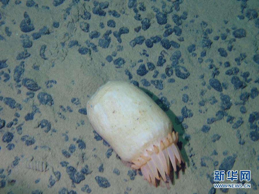图为“蛟龙”号7日以来第三次下潜观察到的海葵。8月11日,“蛟龙”号载人潜水器在位于东北太平洋的中国多金属结核勘探合同区完成了第三次下潜作业,除考察了海底资源外,还观测并捕获到六腕海星等多种海底生物。 图片来源:新华网