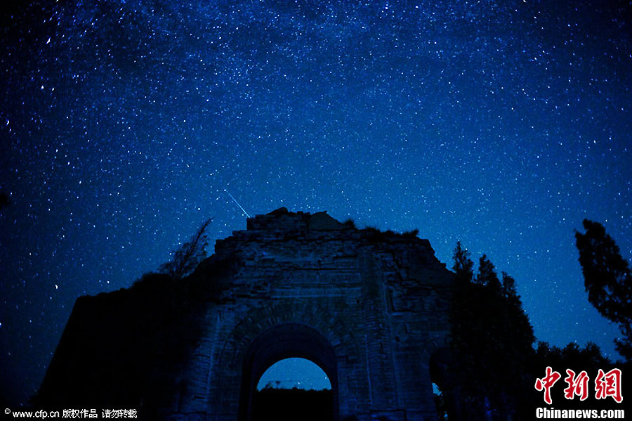 2013年8月13日凌晨,山西永济,一颗流星从尧王台遗址上空划过。刘宝成 摄 图片来源:CFP视觉中国