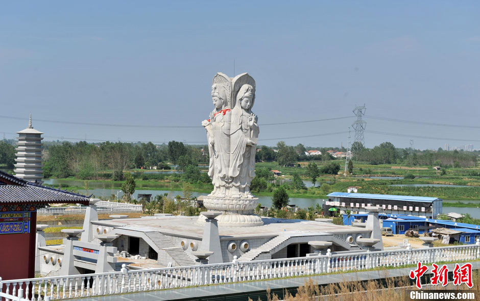 图为正在修建的墓地外部一座四面观音像。中新社发 张畅 摄