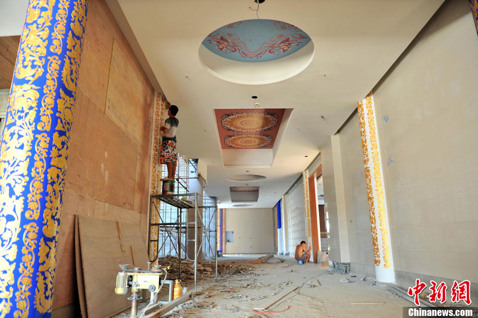 图为正在修建的墓地内部的装饰画。中新社发 张畅 摄