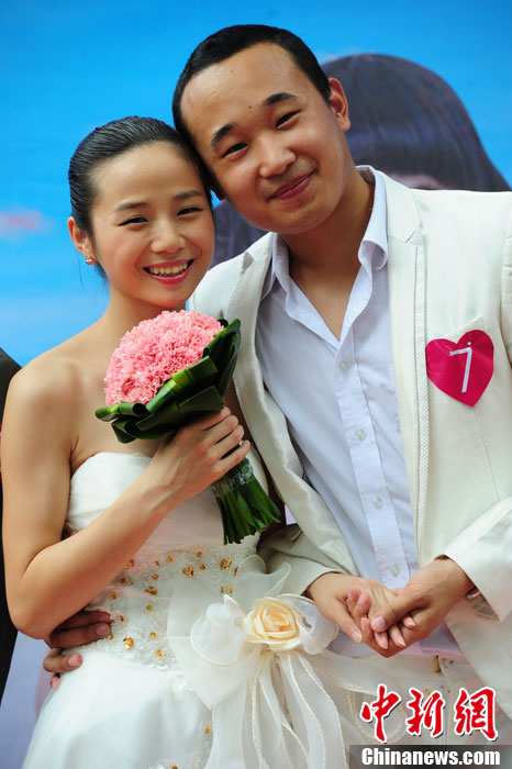 8月13日,深圳12对新人乘坐欢乐谷弹射过山车“雪域雄鹰”挑战速度与激情,度过浪漫的七夕。中新社发 陈文 摄