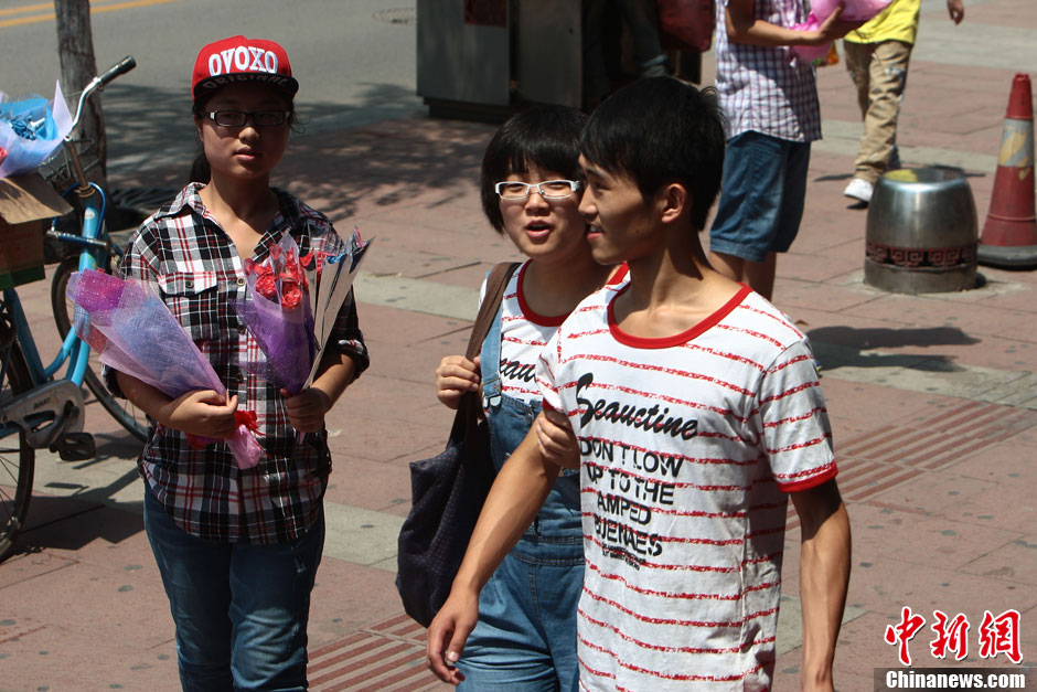 8月13日“七夕”,山西太原街头随处可见“卖花女”。七夕节是中国的传统节日,又因为牛郎织女的传说,在民间被称为中国的情人节。张云 摄