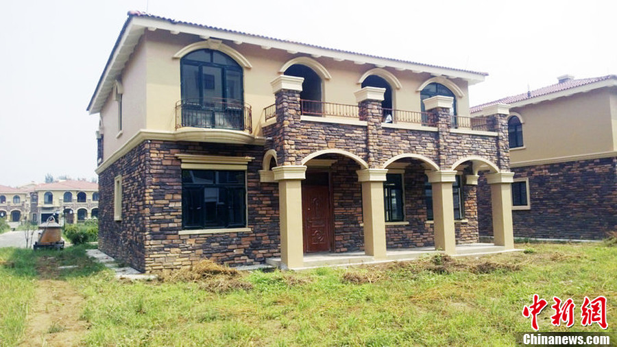 “这里的别墅是外边的人来开发的,占得是村集体的预留宅基地,要一百多万一套。来买房的也都是外边的有钱人,很多开着奔驰、宝马、路虎,我们这里村民咋买的起呀。”一个路过的村民说,“大铁门里面有一间房子,是售楼部,想买房可以去那里问问。”