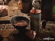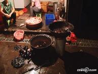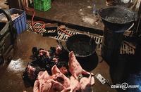 当民警赶到现场时,市场内的黑作坊正在生产各种猪肉制品。作为原料的猪头、猪蹄及猪下水,在流满血水的地上随意摆放。而几口大锅中的黑色糊状物正冒着热气,不法分子为了节省成本,使用了法律明令禁止的沥青来拔除猪毛。