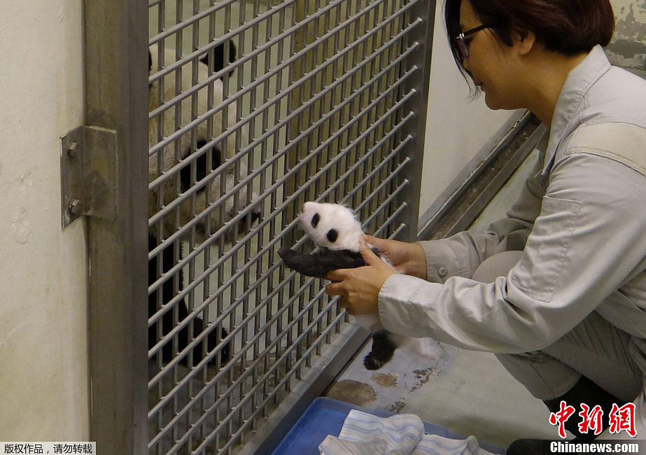 8月12日,台北动物园公布了大陆赠台大熊猫所生千金“圆仔”与“圆圆”相见的照片。图为“圆圆”与幼崽相见。