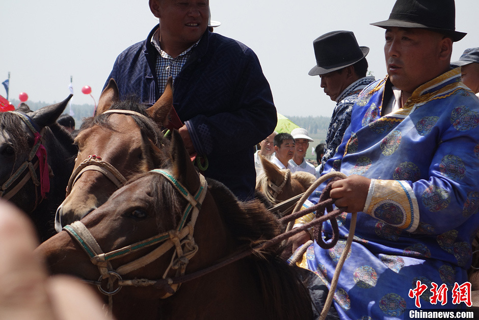 8月13日,内蒙古鄂尔多斯苏泊罕草原上,上演了一场“实景鄂尔多斯婚礼”。当日,伊金霍洛首届鄂尔多斯婚礼文化旅游节在内蒙古西部的苏泊罕大草原旅游景区开幕。图为等待迎接的男方亲戚。中新社发 李爱平 摄