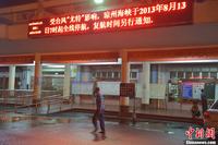 8月13日,受强台风“尤特”影响,海口秀英港侯船大厅门前的电子显示屏显示停航通知。据悉,琼州海峡已于13日7时全线停航,海南东环高铁动车组自8月13日15时30分起全线停运。中新社发 骆云飞 摄