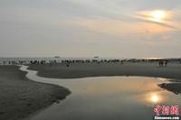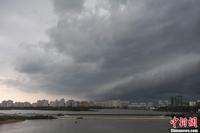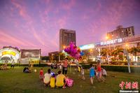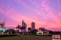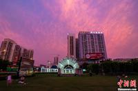 8月13日傍晚,随着今年第11号强台风“尤特”逼近广西,受其外围下沉气流影响,钦州市区上空出现满天的绚丽晚霞。中新社发 李斌喜 摄