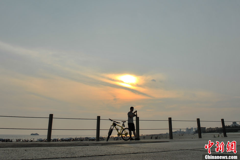 8月13日下午,预计将受强台风“尤特”正面严重影响的广西北海,“享受”狂风暴雨来临前的宁静。据介绍,今年第11号强台风“尤特”的中心13日21时位于北纬19.4°、东经113.5°,最大风速42米/秒。受“尤特”和西南季风的共同影响,13日20时至14日20时,广东西南部和沿海地区、海南北部、广西东南部等地的部分地区有大暴雨,局部有特大暴雨。图为游客在北海银滩游玩。中新社发 洪坚鹏 摄