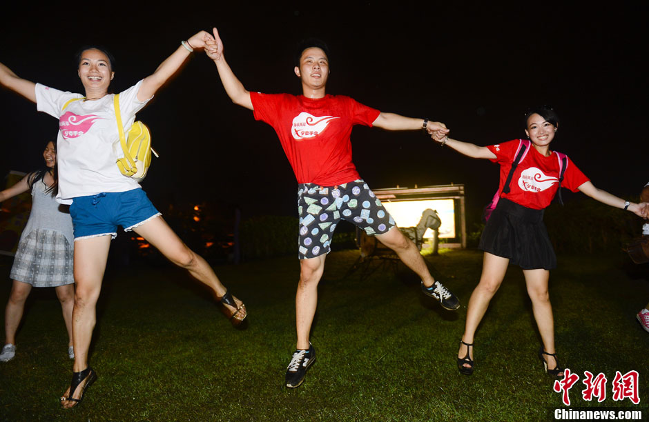 8月13日晚,来自海峡两岸的近200位单身青年相聚台湾高雄。他们分别来自福建龙岩客家县市及厦门、漳州的百余位单身青年,与专程前来的百位台湾同龄人,共同聚集到高雄净园休闲农场“七夕”牵手晚会现场。海峡两岸七夕牵手会举办12年来,今番首次移师高雄。过去12年里,累计有上万人次参加过丰富多元的联谊活动,成就了不少两岸青年联姻故事。中新社发 刘震 摄
