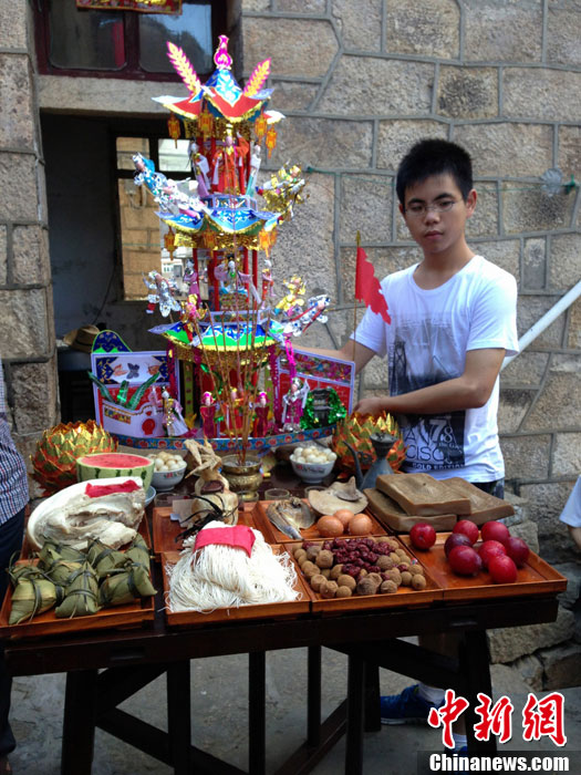8月13日,刚满16岁的浙江温岭少年过“小人节”。中新社发 郭丽丽 摄