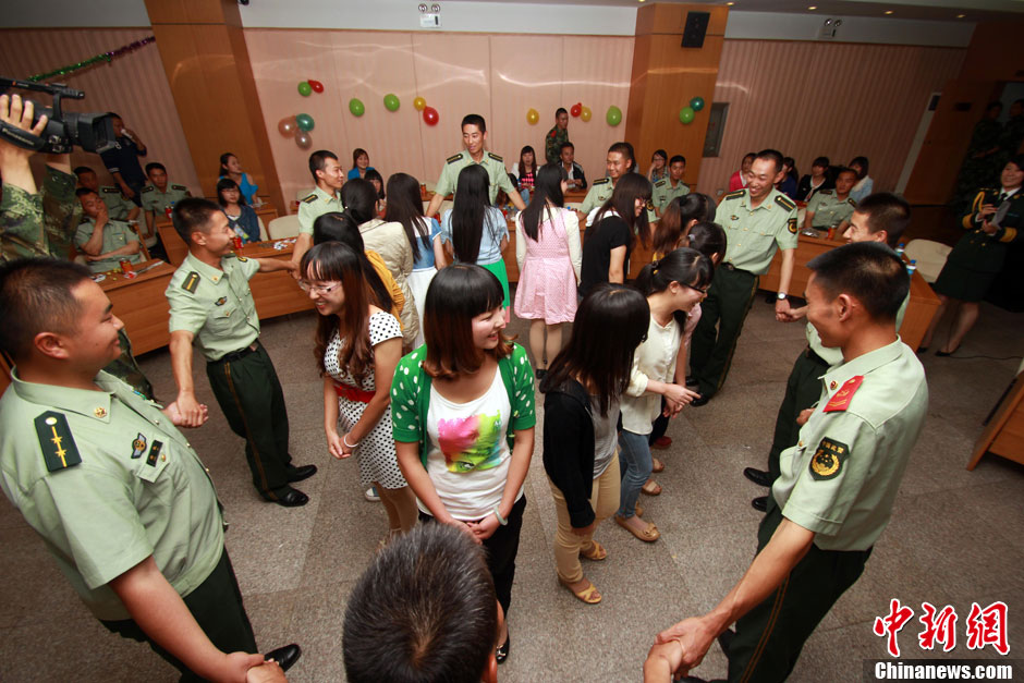 8月13日,武警云南总队第三支队开展的“浪漫七夕,牵手警营”鹊桥会现场。中新社发 郝亚鑫 摄