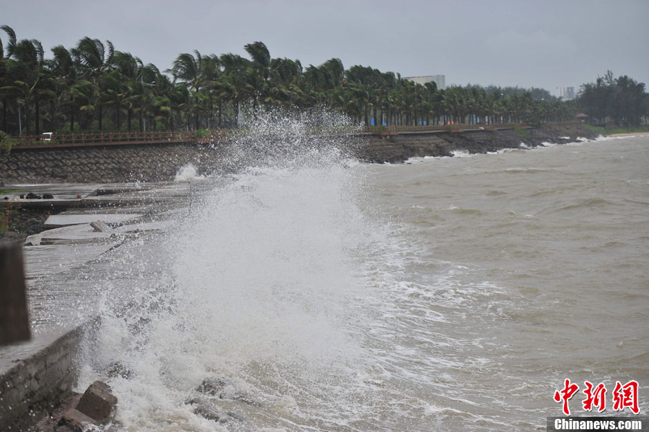 强台风“尤特”影响海南 海口西秀海滩掀大浪