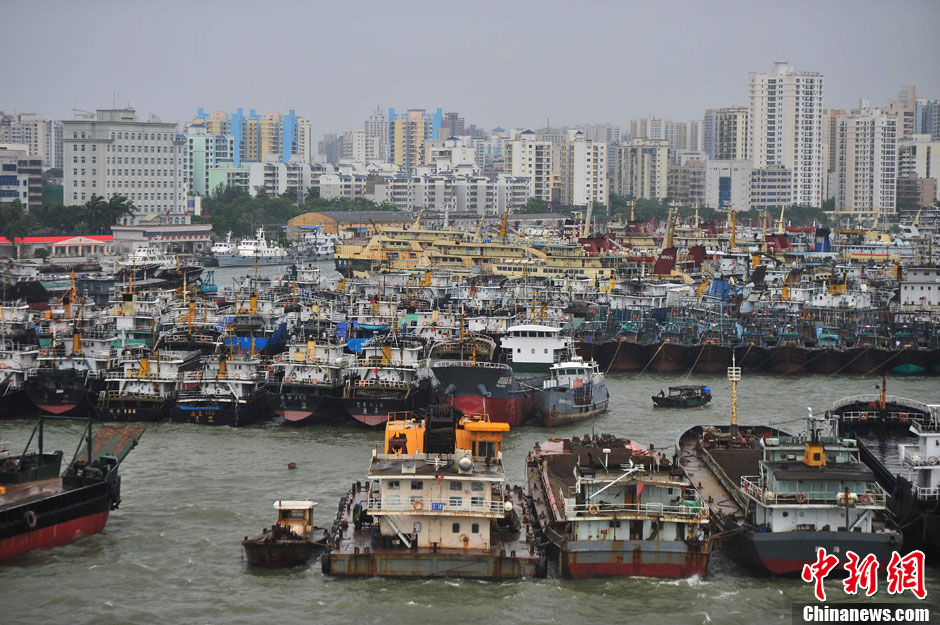8月14日,受今年11号强台风“尤特”影响,海南省上下紧急动员,积极防御“尤特”。至13日16时止,全省已有26915艘渔船顺利进港避风,另有11艘正在回港途中,预计当晚可全部回港。图为海口新港码头停靠了众多避风船只。中新社发 骆云飞 摄