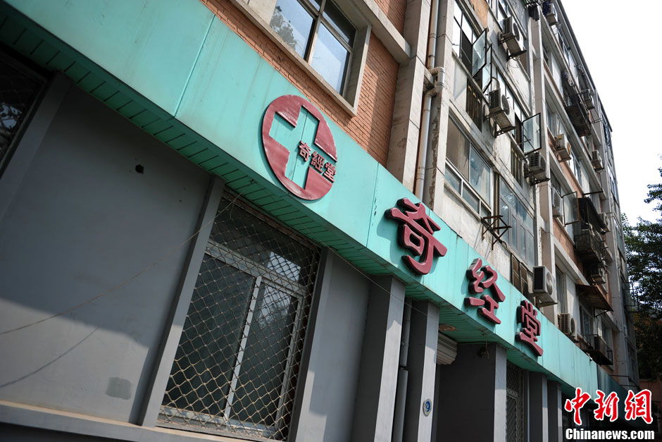 8月14日上午,北京市朝阳区有关部门对位于呼家楼南里的奇经堂门店进行检查,查看了该店的营业执照、卫生许可、员工健康证明等相关证件。工作人员在检查后称,此次检查的相关卫生证件并无问题。此前,海淀区人济山庄楼顶加盖“超级别墅”事件备受社会各界关注。有媒体称,违建业主张必清是“奇经堂”之主,张必清在接受媒体采访时对此予以否认,称自己仅是该公司的顾问,给人做培训。图为奇经堂呼家楼分店。中新网记者 金硕 摄