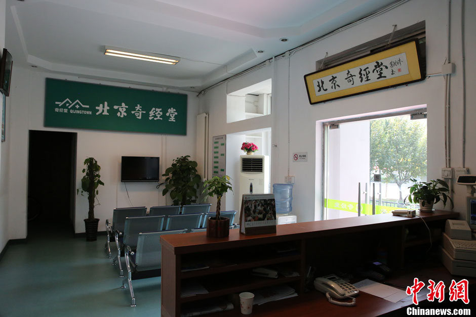 8月14日,位于北京呼家楼南里的奇经堂开门营业,店内工作人员称之前关闭营业是因为受张必清人济山庄楼顶加盖“超级别墅”事件的影响,店内生意冷清以至无人前来就诊看病,因而店面提前关闭。中新社发 熊然 摄