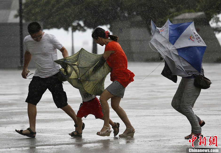 强台风“尤特”袭击香港 行人风中凌乱举步维艰
