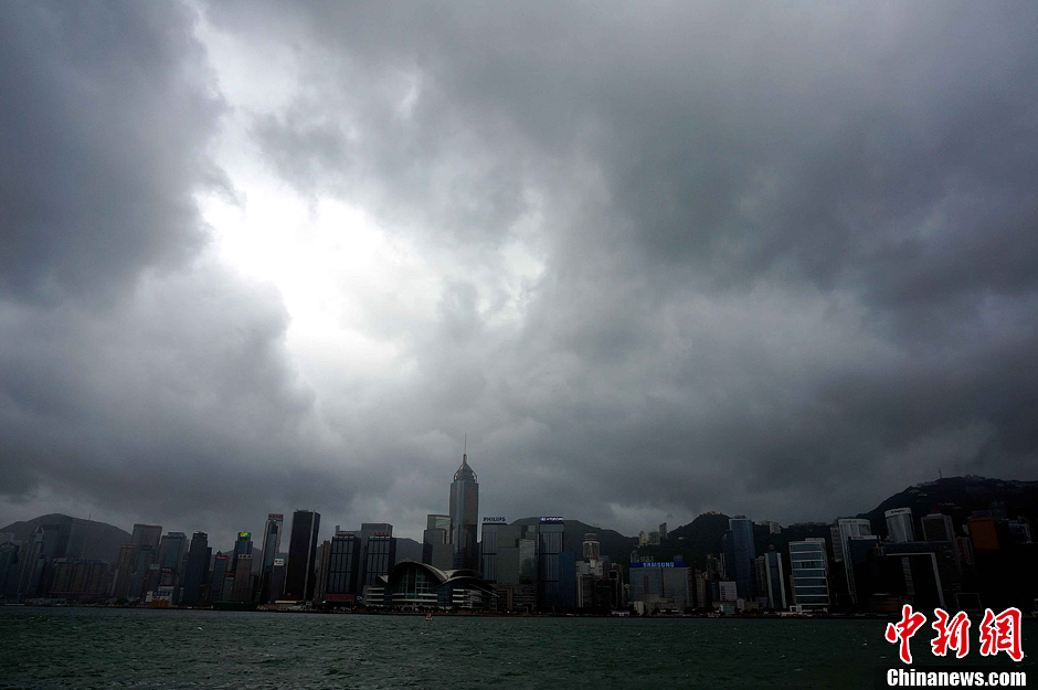 8月14日,香港维港风云变幻。今年最具威力的强台风“尤特”掠过香港。天文台14日晨一时许发出八号烈风或暴风信号。港澳码头、中港城码头均停航至15时半复航。全日三百七十五班航机延误及取消,预料未来两至三日仍有狂风骤雨。中新社发 洪少葵 摄