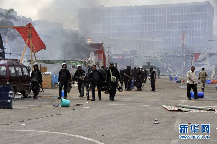 据外媒报道,埃及警方8月14日开始对前总统穆尔西支持者在首都开罗的两处静坐营地实施“清场”行动,双方发生冲突。穆尔西所在的穆斯林兄弟会表示,警方的清场行动已造成超过100人死亡,2000余人受伤。埃及安全部门称,目前警方已经完全控制了一处营地。图为清场现场。图片来源:新华网