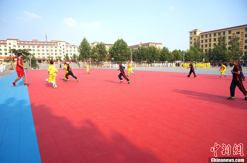 图为“少林足球队”队员在场地进行半场传球。据“少林足球队”教练杨雷介绍,队员每天上午学习文化课,下午则在室外练习足球和武术。足球训练课,一般会安排学生练习颠球、带球、传球,同时还会根据队员训练情况安排比赛对抗。周小云 摄