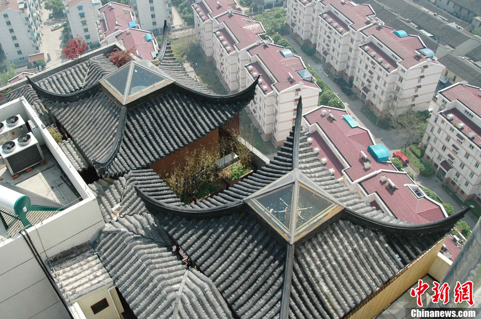 苏州高楼楼顶现“园林式别墅” 飞檐翘角似拙政园