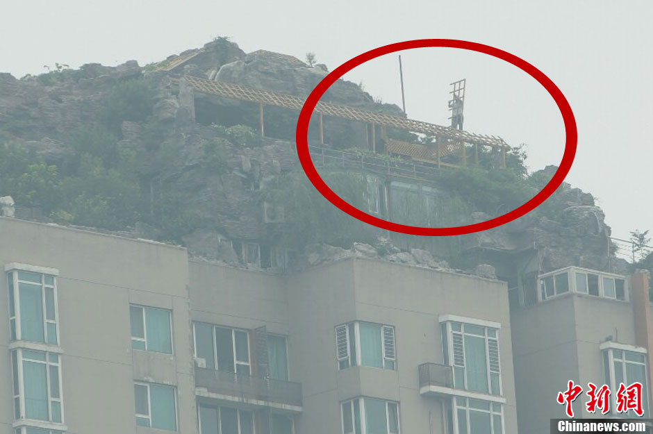 8月15日,北京“最牛违建”人济山庄楼顶别墅开始拆除。图片来源:CFP视觉中国