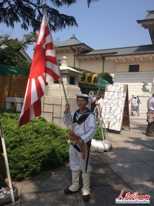 图为当地时间8月15日上午,身穿旧日军军装的日本人在靖国神社。赵松 摄 图片来源:人民网