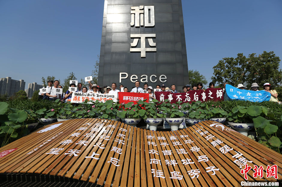 8月15日,来自日本的和平友好人士在和平广场悼念侵华日军南京大屠杀遇难者。中新社发 泱波 摄