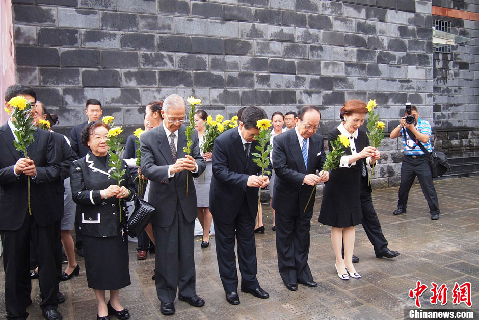8月15日,滇西抗战纪念馆在腾冲正式开馆。图为中国国民党副主席蒋孝严(左五)祭奠中国远征军亡灵。中新社发 胡远航 摄