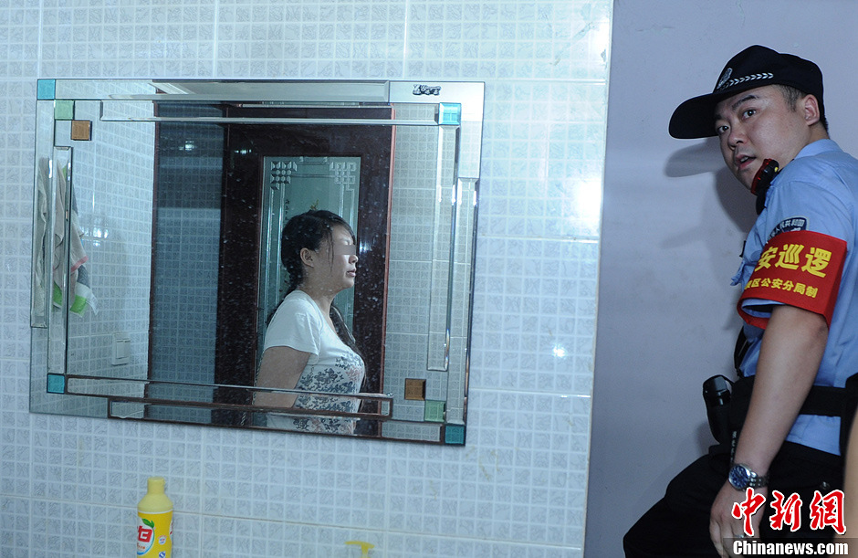 8月15日晚,重庆沙坪坝区公安分局渝碚路派出所民警在商圈附近的保健按摩娱乐场所进行检查。为打击突出违法犯罪活动,扫荡浮在社会面上的违法犯罪分子,进一步净化社会环境,重庆市沙坪坝区公安分局组织民警1000余人、出动警车110余辆对沙坪坝片区的旅店业、桑拿洗浴、发廊、酒吧等公共娱乐场所进行清查。图为民警正在保健按摩店巡查。陈超 摄