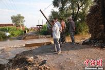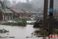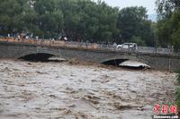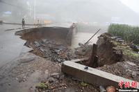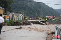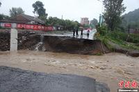 8月15日晚间起,吉林市地区遭遇暴雨,致多个乡镇受灾。16日凌晨4时许,桦甸市红石镇加级河河水因暴雨迅速上涨,涌入红石社区沙场居民小区。来自官方的消息称,目前已致11人遇难,3人失踪。图为加级河河水冲断道路。苍雁 摄